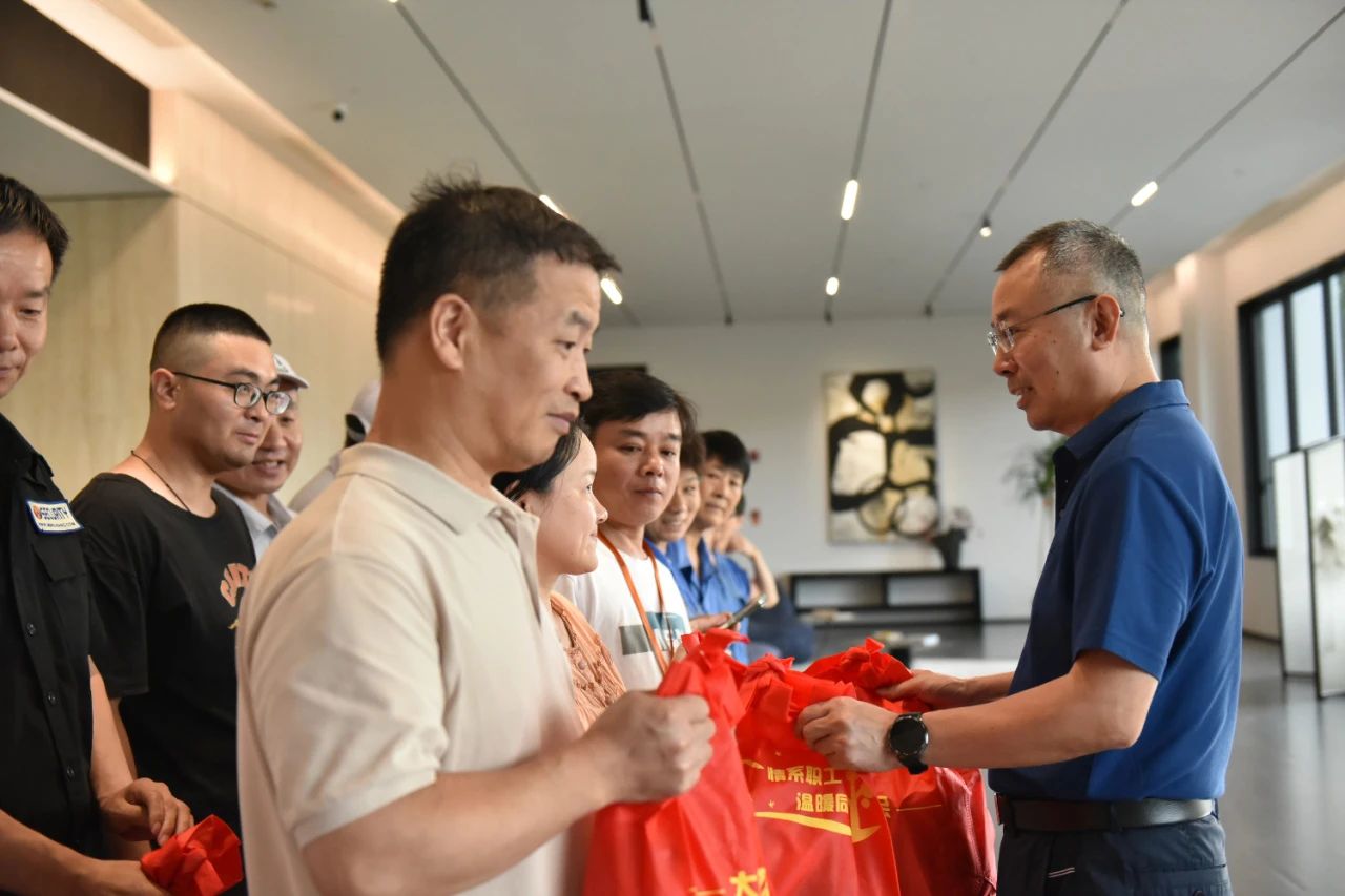 Despite the blazing sun, employees in outdoor roles such as security guards, cleaners, plant maintenance workers, warehouse staff, and safety officers remain steadfast in their duties, ensuring the company's operations run smoothly. Huang Junming, General Manager of EverProX Jiaxing, led a team to visit and express appreciation to these workers, presenting them with carefully prepared cooling kits containing towels, laundry detergent, mung beans, shampoo, body wash, and cologne—practical items designed to provide relief. He also emphasized the importance of heatstroke prevention and encouraged employees to adopt scientific work-rest schedules.